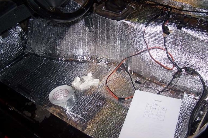NOTE: This example is an complete strip-down. The normal kit / install does not cover the center tunnel due to the amount of disassembly involved.The kit does come with ample extra material to cover this area should you decide to do it